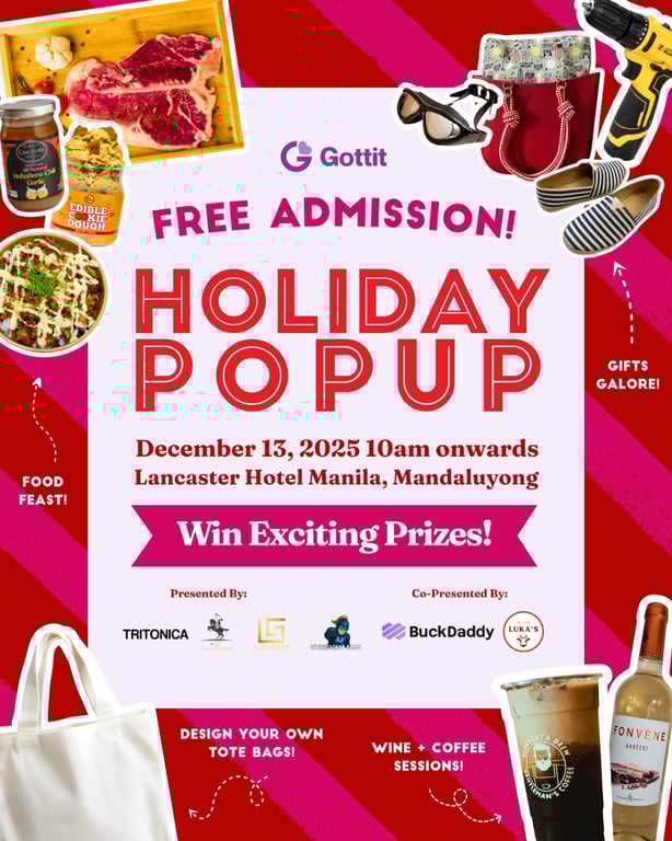 Manila, Philippines — December 2025 — Gottit proudly announces the launch of its very first Gottit Holiday PopUp Market, a curated holiday experience bringing together the season’s finest eats, treats, and one-of-a-kind finds. Happening on December 13, 2025 at the Lancaster Hotel, this premiere event is set to become the newest festive tradition for families, shoppers, creators, and holiday enthusiasts alike.