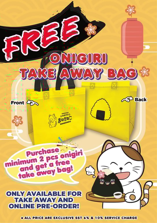 Karaoke Manekineko Offers Free Onigiri Takeaway Bags with Every Purchase of Two Onigiri!