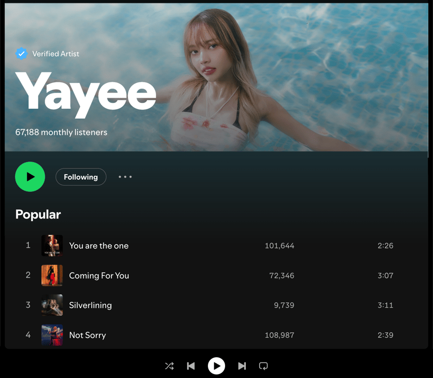 Her journey took a significant turn after auditioning for the Norwegian production company Up! Hit Music Production, where she secured a deal with a team dedicated to nurturing emerging artists. This partnership has provided Yayee with the resources and support necessary to fully realize her artistic vision, allowing her to collaborate with talented producers and songwriters.