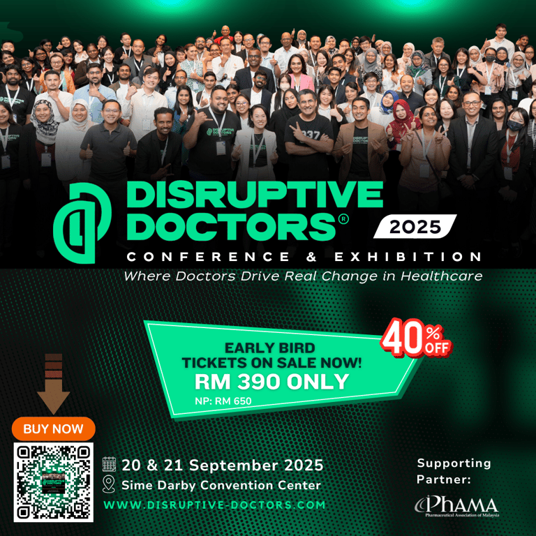 For doctors who refuse to settle for the ordinary, the Disruptive Doctors Conference 2025 is where the future of healthcare is shaped. This year, Disruptive Doctors with supporting partner Pharmaceutical Association of Malaysia (PhAMA) work hand-in-hand to bring together one of the most anticipated events in the medical field!