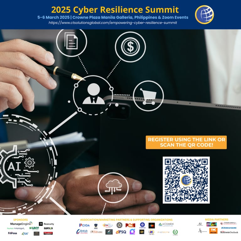 Register now at 🔗 https://www.ctsolutionsglobal.com/empowering-cyber-resilience-summit to secure your spot at the 2025 Cyber Resilience Summit and become a part of the global cybersecurity conversation.