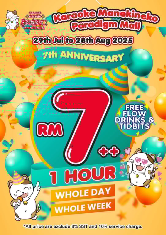 Karaoke Manekineko Paradigm Mall Celebrates 7th Anniversary with RM7++ Specials!