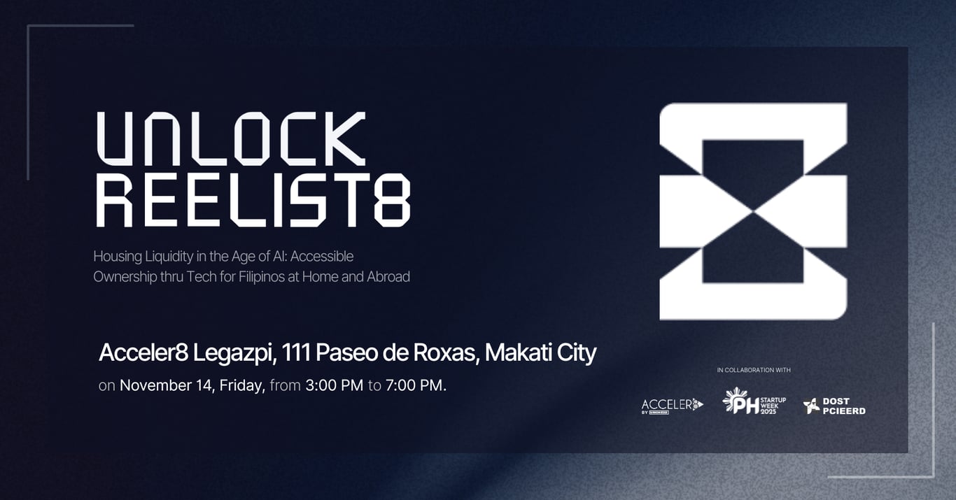 Reelist8 will officially launch the ecosystem at its landmark summit, “Unlock Reelist8 – Housing Liquidity in the Age of AI: Affordable Homeownership thru Technology,” on November 14, 2025 at Acceler8 Legazpi, Makati City.